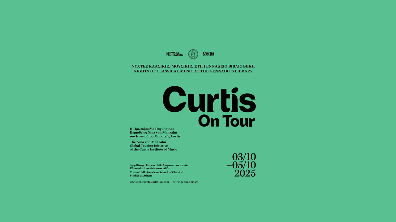 Η Γεννάδειος Βιβλιοθήκη της Αμερικανικής Σχολής Κλασικών Σπουδών στην Αθήνα και το Ίδρυμα Schwarz παρουσιάζουν για 11η συνεχή χρονιά τις «Νύχτες Κλασικής Μουσικής στη Γεννάδειο Βιβλιοθήκη». Από τις 3 έως και τις 5 Οκτωβρίου, τo Curtis on Tour, η πρωτοβουλία παγκόσμιας περιοδείας Nina von Maltzahn του Ινστιτούτου Μουσικής Curtis, έρχεται και πάλι στην Αθήνα με ένα ονειρικό φεστιβάλ μουσικής δωματίου, όπως κάθε φθινόπωρο από το 2015. Σας περιμένουμε για να παρακολουθήσουμε μαζί τρεις συναυλίες με τις σοπράνο Νικάν Ινγκαμπίρε Κανατέ και Τζέισλα Ροσάριο Σάντος, τον βαρύτονο Εμίλιο Βάσκες, την κιθαρίστα Ξίνγκξινγκ Γιάο, και τον πιανίστα Κάρλις Μπουκόφσκις.