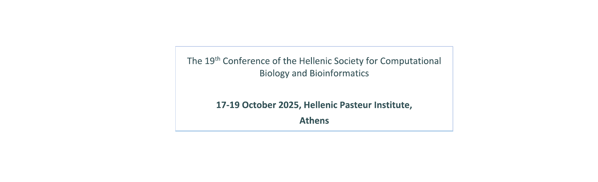 The 19th HSCBB25 conference is the major event of Hellenic Society for Computational Biology and Bioinformatics. It is a forum to communicate state-of-the-art research, interact and establish scientific networks and collaborations using best practices.