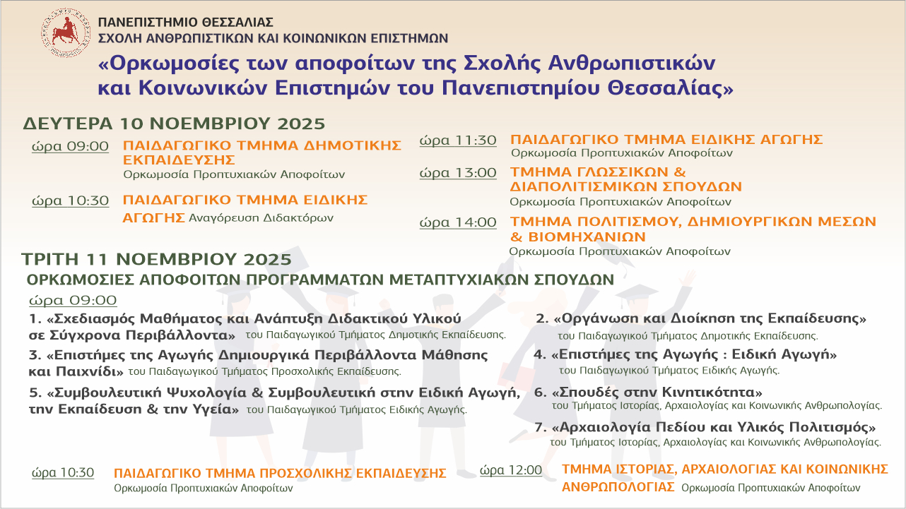 Ορκωμοσίες των αποφοίτων της Σχολής Ανθρωπιστικών και Κοινωνικών Επιστημών του Πανεπιστημίου Θεσσαλίας».