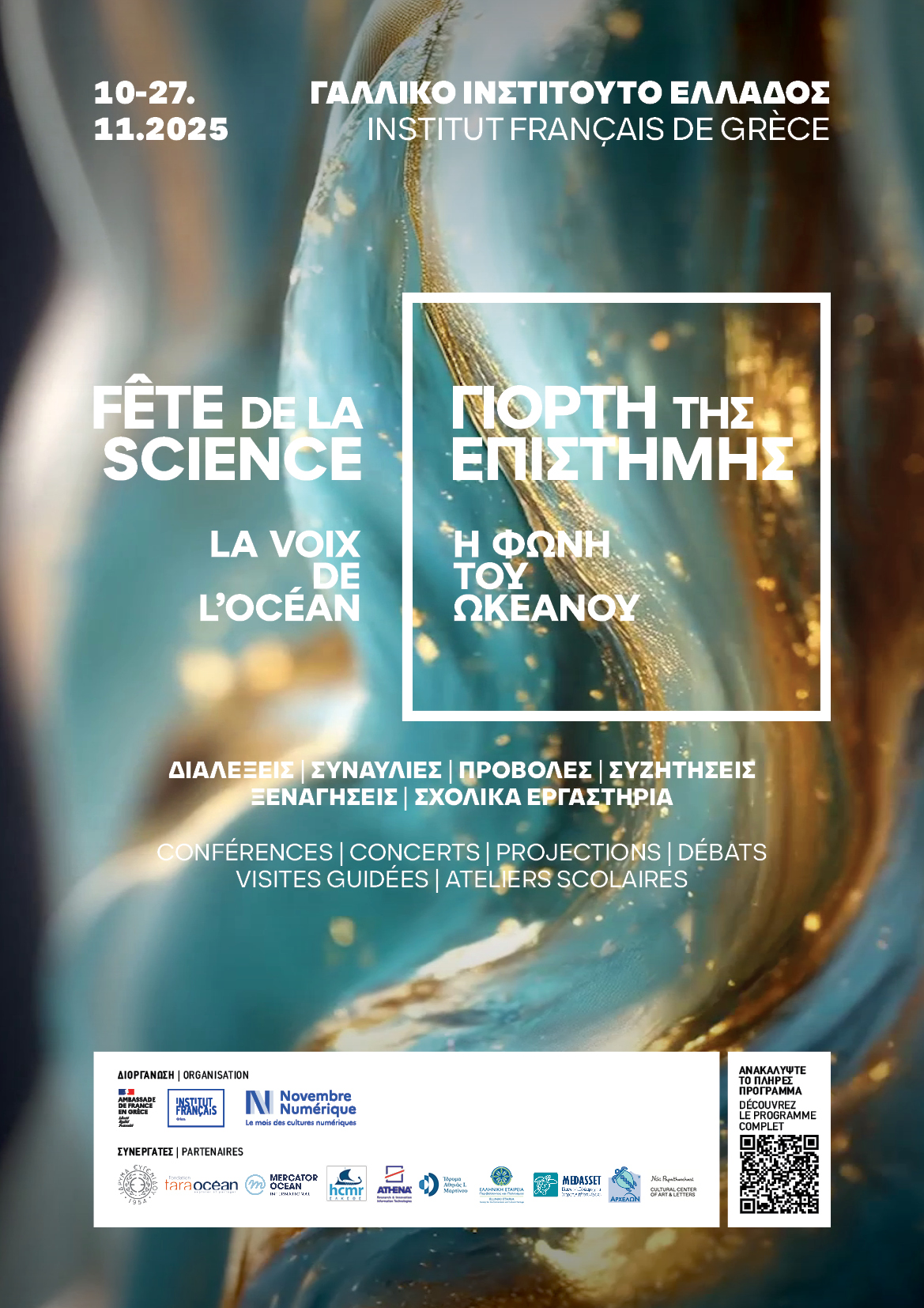 Στο πλαίσιο αυτό το Γαλλικό Ινστιτούτο Ελλάδος διοργανώνει από τις 10 έως τις 27 Νοεμβρίου, μια γιορτή αφιερωμένη στην επιστήμη και στον ωκεανό του οποίου η εξερεύνηση και η προστασία αποτελούν σημαντικές προκλήσεις του 21ου αιώνα.