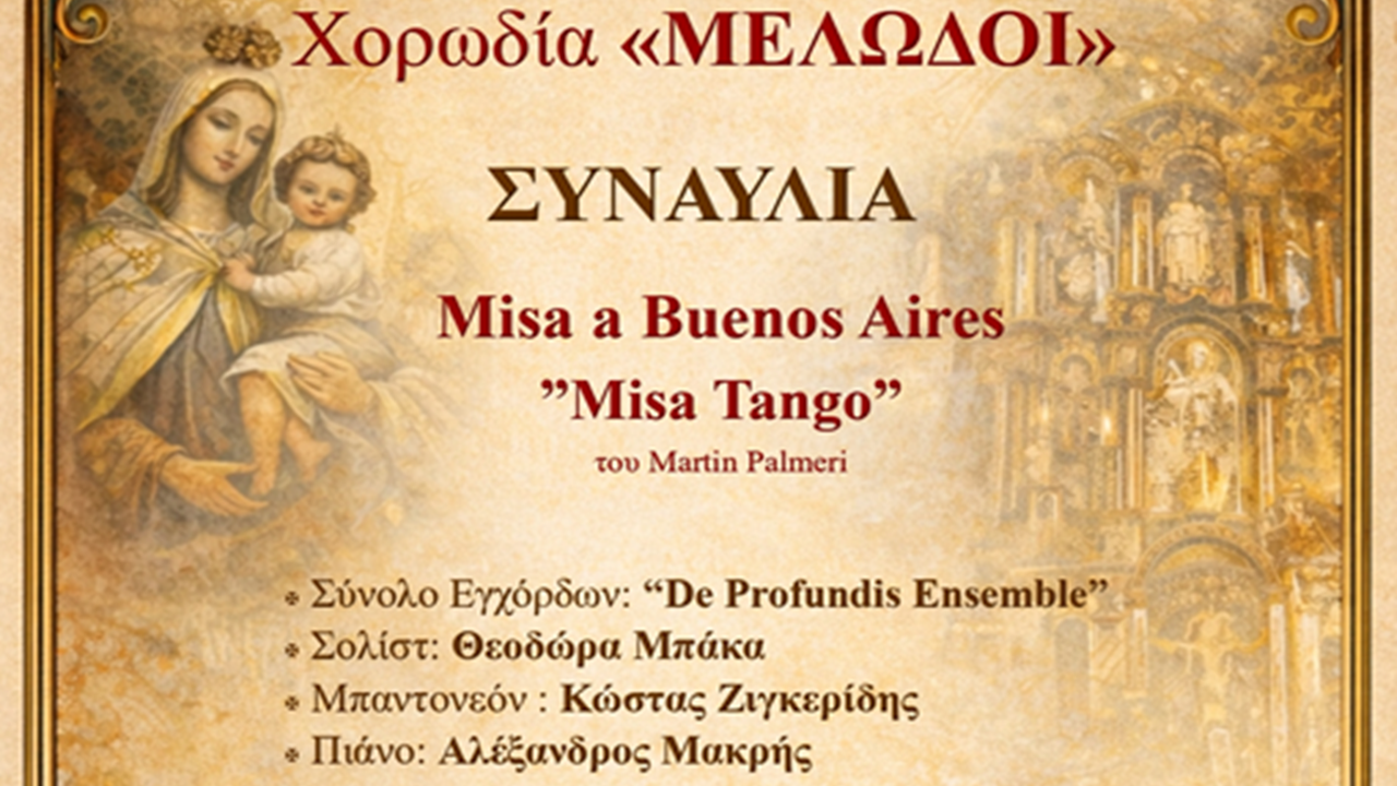 Η Χορωδία «ΜΕΛΩΔΟΙ» παρουσιάζει το έργο «Misa a Buenos Aires - Misa Tango», του Αργεντινού συνθέτη Martin Palmeri.