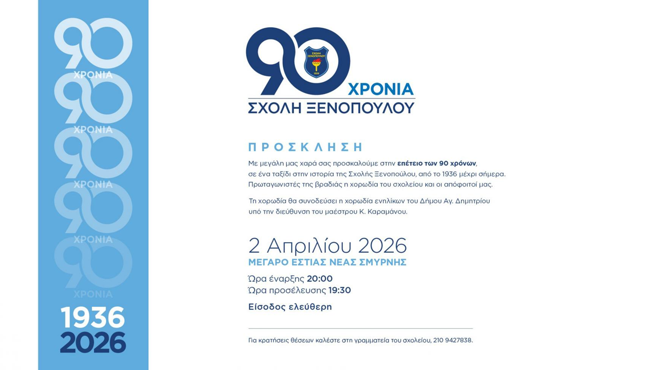Με μεγάλη μας χαρά σας προσκαλούμε στην επέτειο των 90 χρόνων, σε ένα ταξίδι στην ιστορία της Σχολής Ξενοπούλου, από το 1936 μέχρι σήμερα.